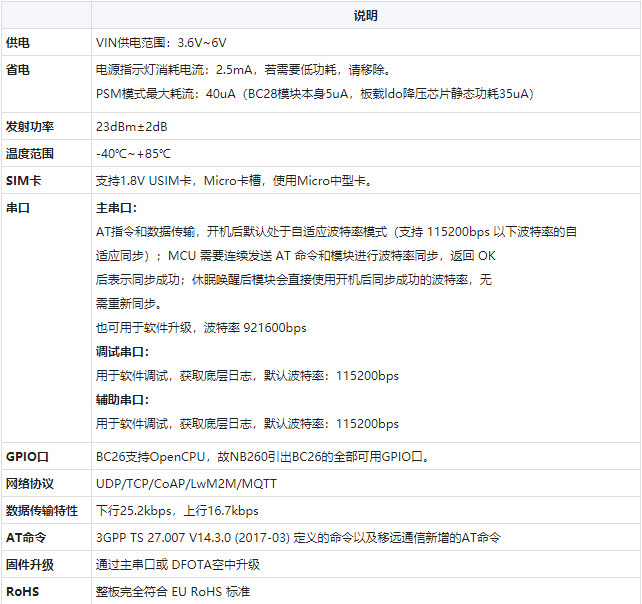 NB260采用了省电技术,在省电模式(PSM)下,低至40uA,其中BC26功耗5uA,LDO稳压芯片静功耗态35uA。