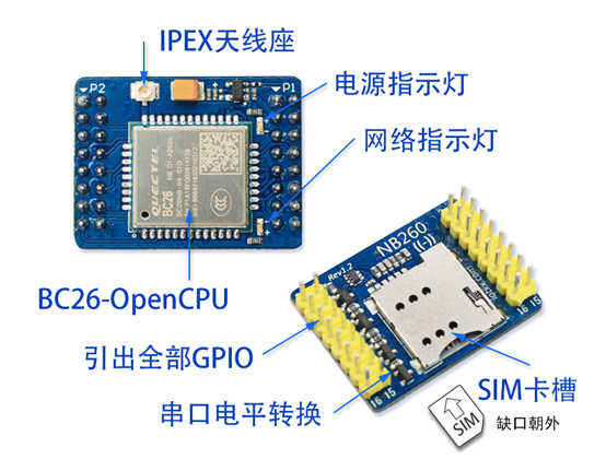 NB芯片本自带有一些可供输入输出的IO口使用,但由于某种原因很多第三方厂商进行芯片封装时会将其去掉,保留基础的RX、TX、VCC、GND即可完成数据的收发。如果需要控制NB芯片里的GPIO就不能使用AT指令完成,而需要通过opencup直接编写代码烧写到芯片上进行GPIO控制。此时只有BC26支持Opencup。