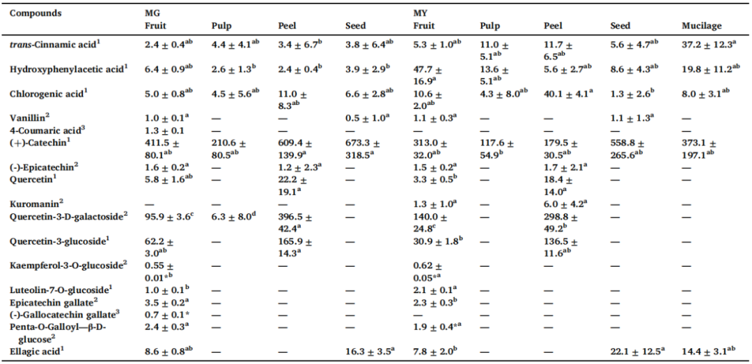专业的解读平台基于常规代谢组学方法对MY果皮中的色素成分及抗氧化剂等关键成分进行了详细分析。研究发现,在MY样品中多种色素成分如β-胡萝卜素等明显少于MG样品(图3C)。对于整果而言,在ACC和ABA方面 MY 显然高于 MG(图3D、E)。在酚类物质中系统分析了17种不同类型的化合物,并发现大多数鉴定到的酚类物质在果皮中的浓度与其它组织相比有明显优势(表1)。