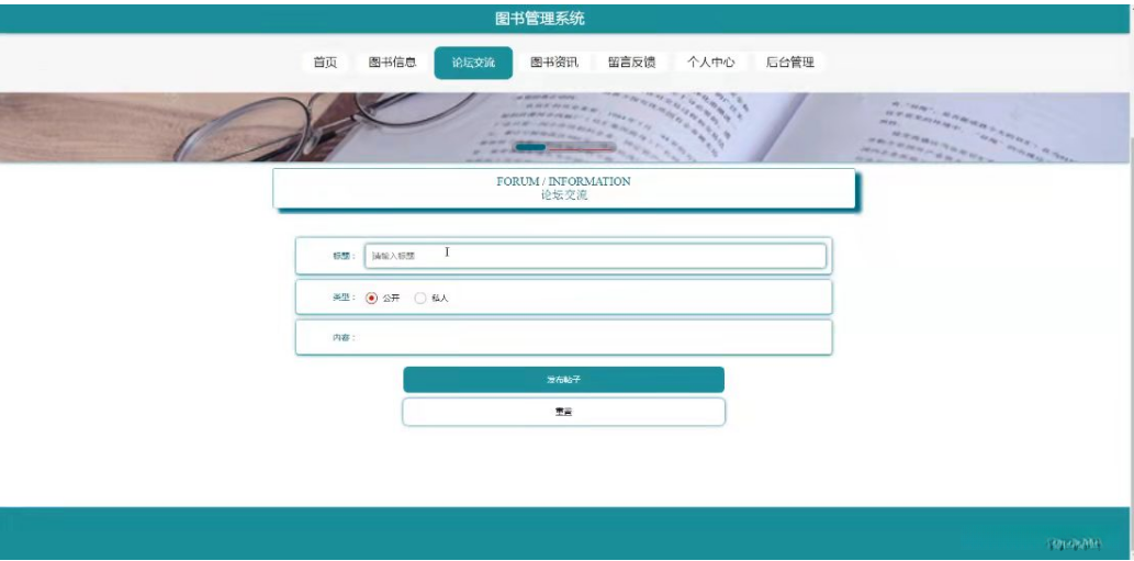 论坛交流,在论坛交流页面可以查看标题,类型和内容等详细内容,并进行发布帖子或重置操作,如图5-3所示。