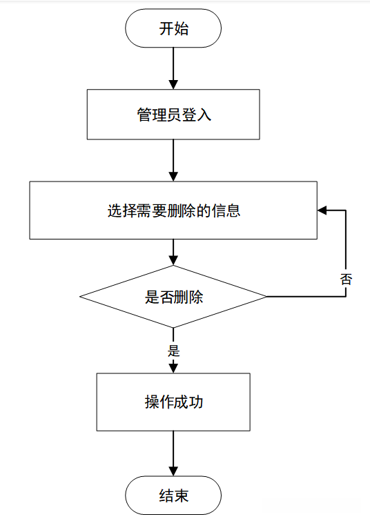 运行的主要流程为,登入管理员用户名,因为只有管理员才有权限进行该操作,然后查看所有注册用户的信息,选中需要删除的用户信息,然后确认删除,即为完成,系统将修改的数据更新至数据库,主要过程如图3-1所示: