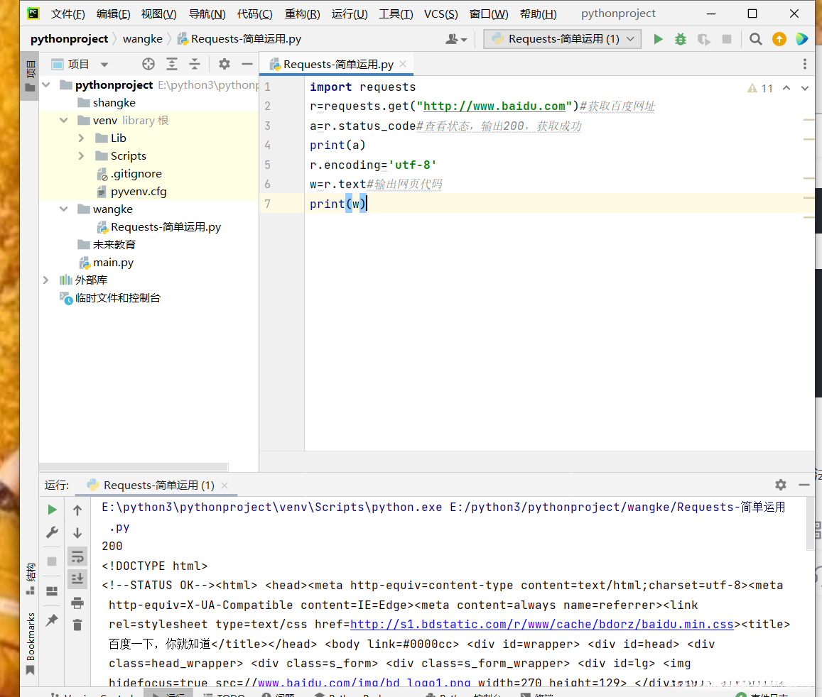 print(a)#状态码输出200表示成功