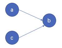 下图给出了一个稍微复杂一点的贝叶斯网络,即b的发生是由a、c两个因素联合导致的: