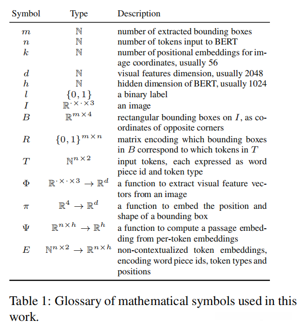本工作中,我们假设数据由四元组组成(I,B,T,l):I为一个图像;B为指向I的区域的边界框列表,每个bi通过左下角、高度和宽度来确定;T是标记文本的一部分,具有一些标记不是自然语言,而是对B的明确引用;l是一个二值标签{0,1}。