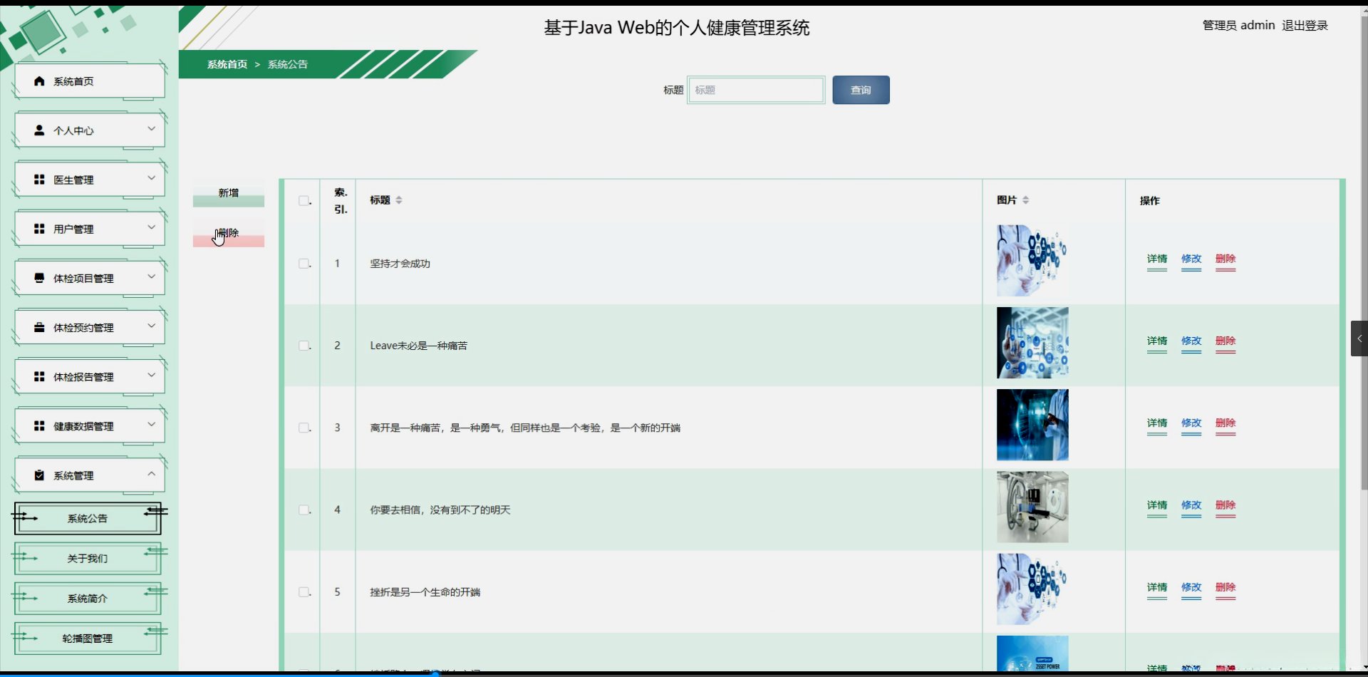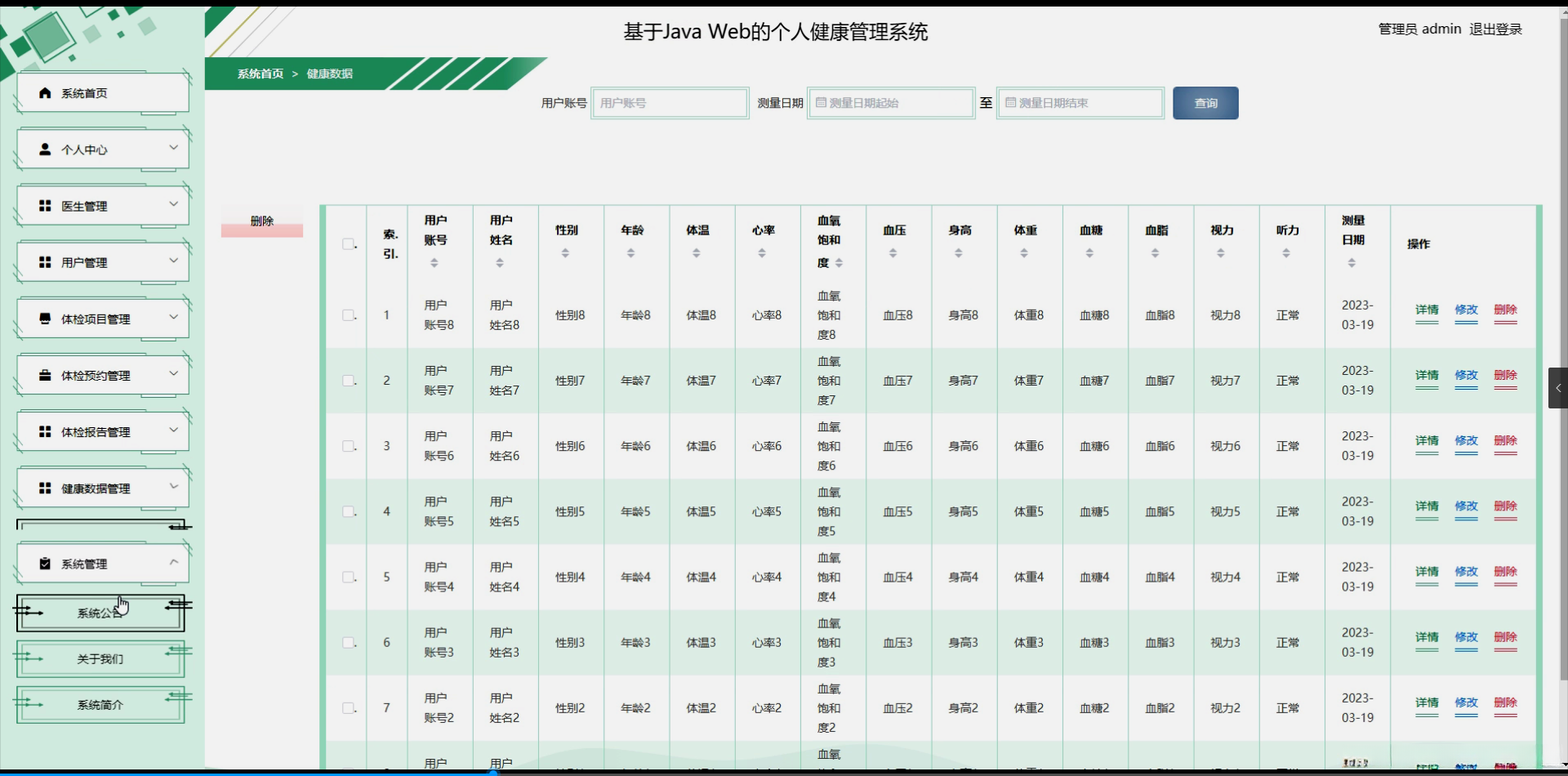 社会节奏加快后 人们越来越重视自身健康的状况 现代社会中 健康管理已经成为不可忽视的重要内容 然而 面对纷繁复杂的健康管理信息与数据 个人往往难以有效地进行管理和分析 因此 开发这样一个个人健康管理系统变得尤为必要 这个系统能够帮助用户记录并管理其自身的健康数据 包括饮食运动睡眠等多个方面的信息 同时提供数据分析与建议 助力用户更好地了解自身情况 并制定出适合的健康计划