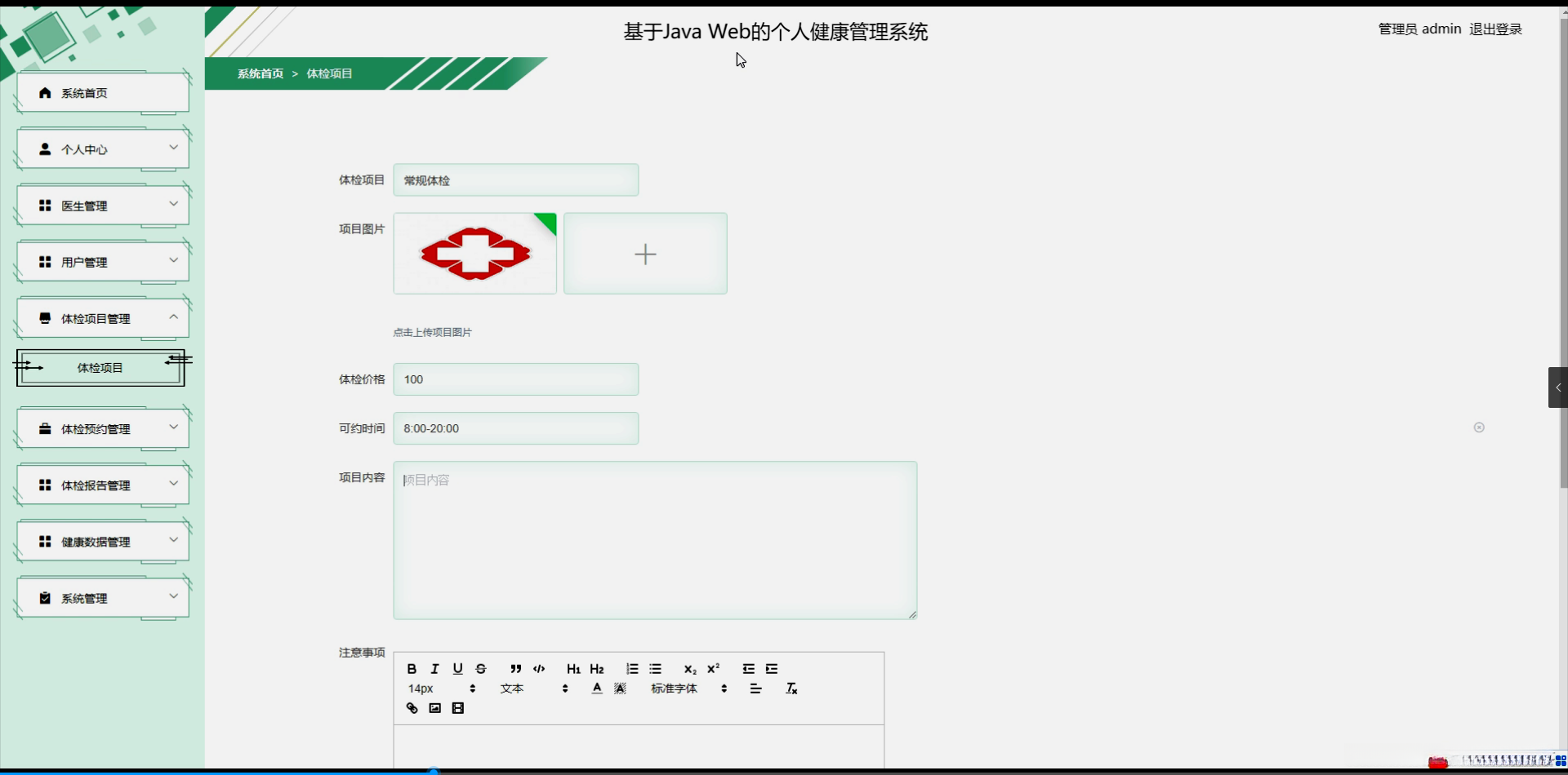 个人健康管理系统的旨在为用户提供一个便捷快捷且精准高效的健康管理工具。借助该系统用户能够实时记录并全面查看各项健康数据包括体重血压血糖等指标的变化轨迹以及饮食运动睡眠等方面的具体情况。系统基于用户的各项健康数据进行深度解析与反馈提供一整套科学合理的健康管理方案帮助用户及时发现问题采取相应措施改善 thereby实现科学化管理提升生活质量预防疾病发生 从而达到健康生活方式的目标