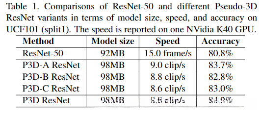 其中P3D ResNet是结合了三种P3D Block的ResNet-50,即三种Block交替出现。