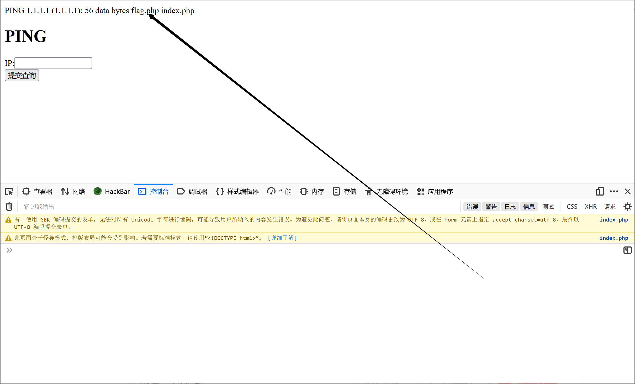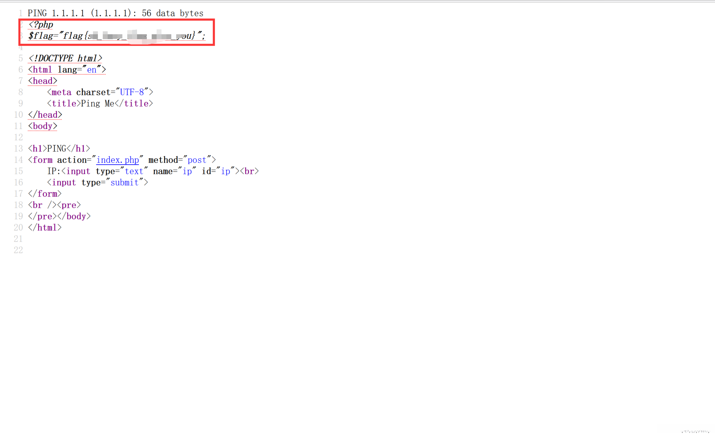 1.1.1;cat flag.php #一定要注意是英文的分号