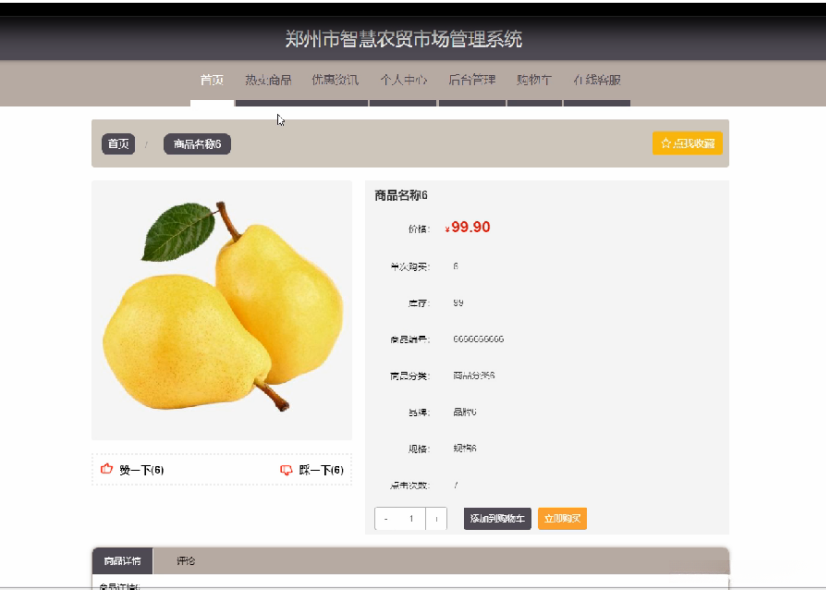 热销商品信息展示页面提供全面的商品详情服务,在此页面您可以浏览商品名称及其价格信息,并了解其库存数量以及相关的商品编号、分类信息和品牌背景等基础数据。此外您还可以进行点赞、踩踏脚印、留下评论以及收藏起来等互动操作,请参考图5-3获取详细的操作指南