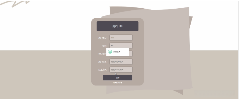 请在用户的注册页面上输入用户名、密码、重复输入密码、姓名以及联系方式等信息完成注册流程(如图5-2所示)。