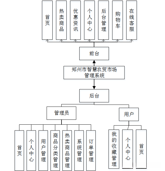 基于实际生活中的农贸市场需求以及对系统的深入分析,在制定相关管理方案时, 将系统的权限划分为管理员类和其他各类用户.