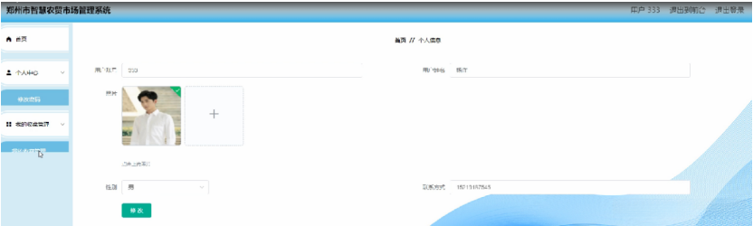 个人中心内的个人信息页面上, 用户需要输入用户的账号信息、姓名信息、上传的照片信息、性别信息以及联系人信息来进行数据更新操作, 如图5-11所示