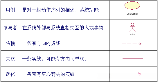 用例(use case):用例表示系统所提供的服务,它定义了系统是如何被参与者使用的,描述的是参与者为例使系统所提供的某一完整功能而与系统发生的一段对话。