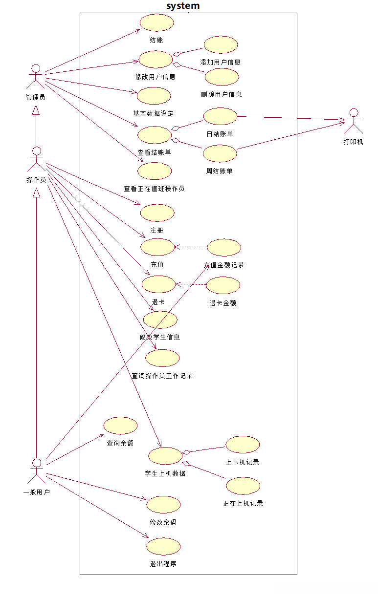 注册,充值,退卡,查询退卡记录,查询操作员工作记录,修改学生信息