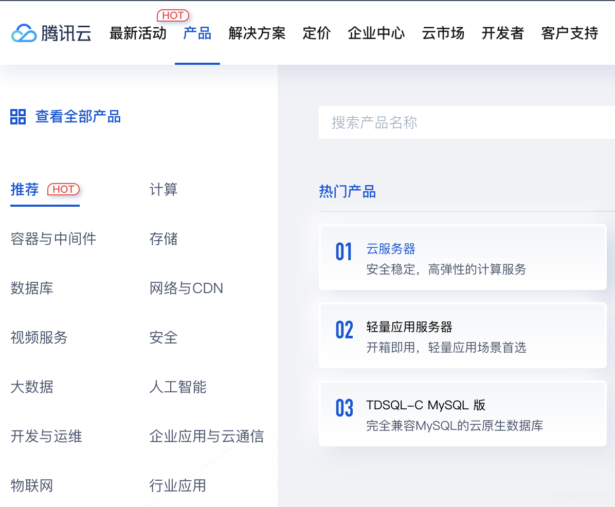 因为之前尝试使用阿里云的时候,阿里云的产品入口太多太复杂了,对新手不是很友好,所以这次我选择了腾讯云。