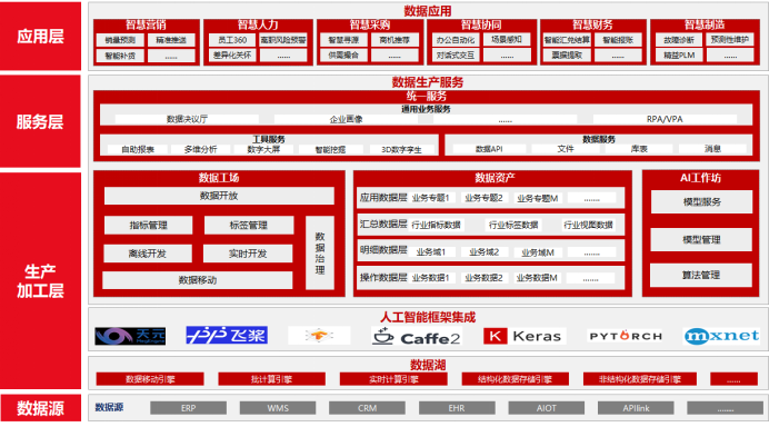 数据智能中台整合了企业的大数据资源、行业运作规律以及先进算法。依托低门槛的数据生产环境和智能化的工作坊平台,在线构建智慧化的企业应用场景,并助力智慧商业决策的达成。数字 assistant VPA 机器人系统帮助员工实现更加高效的工作方式;ai流程自动化工具(RPA)辅助用户规避重复性且低效的手动操作,在提升工作效率的同时解放出更多时间用于战略性的决策制定(抬头看路)。这些技术手段不仅加速了人工智能在现有业务中的应用进程,并有效突破了企业的运营瓶颈;还为企业带来了更加灵活高效的创新空间。借助智能分析技术赋能企业的数据分析与可视化技术的便捷集成,在易用性和可扩展性之间找到了平衡点:提供自助式分析工具和报表生成能力;同时支持企业在可视化设计环境下进行个性化的建模实践,在直观展示数据特征的基础上实现自主化的知识发现(浏览态自助分析)。
