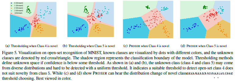 研究结果进一步表明;通过决策边界可视化技术可以看出;PROSER系统能够根据不同类别组合自动学习并适应相应的自适应阈值设置。