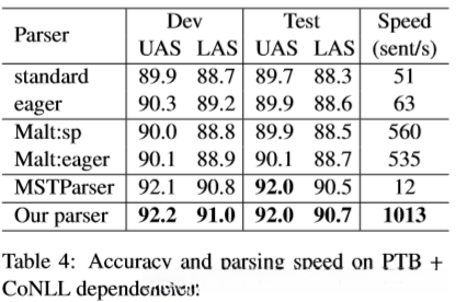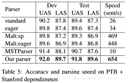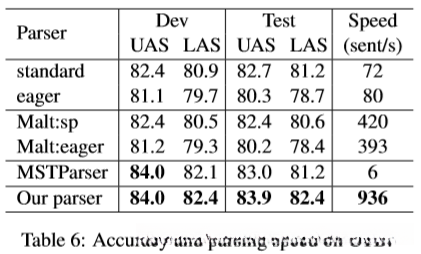 两种指标:U型无标记连接分数(UAS)仅用于预测三种转换关系类型中的哪一个,以及L型有标记连接分数(LAS)同时用于预测哪一种依赖关系。