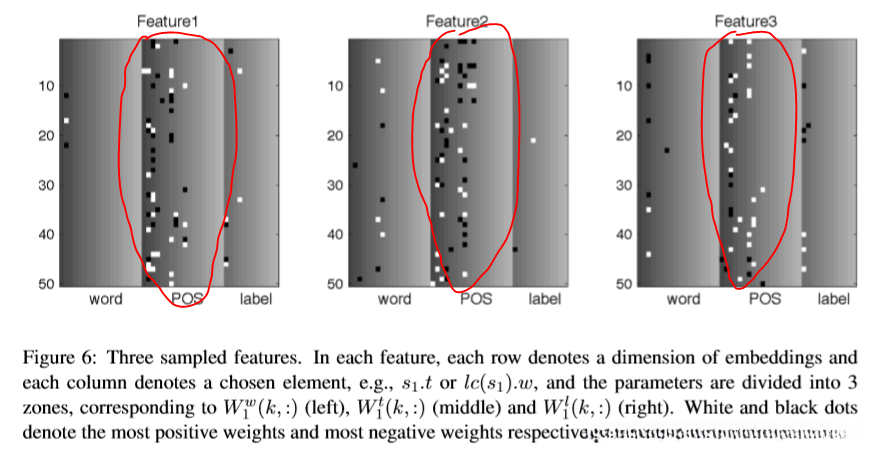 每个隐藏层神经元被视为一个特征,在考察该神经元与输入(word、pos、label)之间的关联时发现,在权重矩阵中数值大于0.2的部分具有显著性。