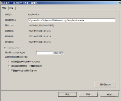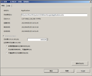 安全日志的最小文件大小设为128MB;一旦日志文件大小超过最大限制,则会自动替换超过30天之前的记录。
