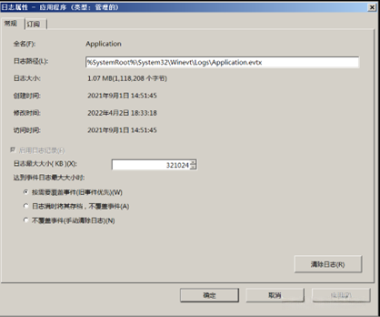 系统日志的最小存储量设定为32MB,在最大存储容量达到上限时会自动进行相应的配置以处理事件请求。