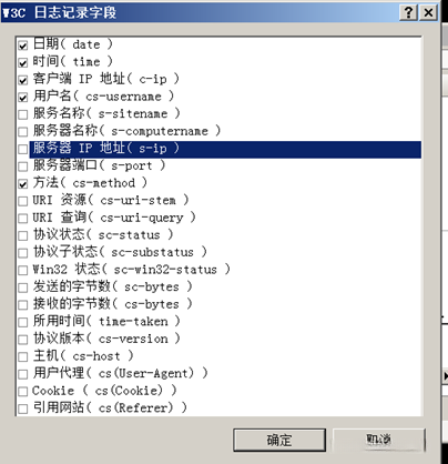 配置IIS的日志审计功能,并规定采用W3C标准存储日志文件,仅收集日期、时间戳(即客户端IP地址)、用户名以及操作方法。