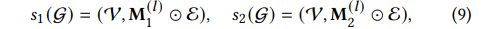 是边集 E 上的两个掩码向量。只有邻域内的部分连接有助于节点表示。因此,将这两个子图耦合在一起的目的是捕捉节点局部结构的有用模式,并进降低噪声的干扰,增加鲁棒性。