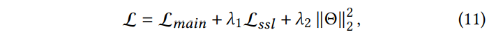 为了改进SSL任务的推荐,我们利用多任务训练策略来联合优化经典推荐任务(参见等式(5))和自我监督学习任务(参见等式(10))。