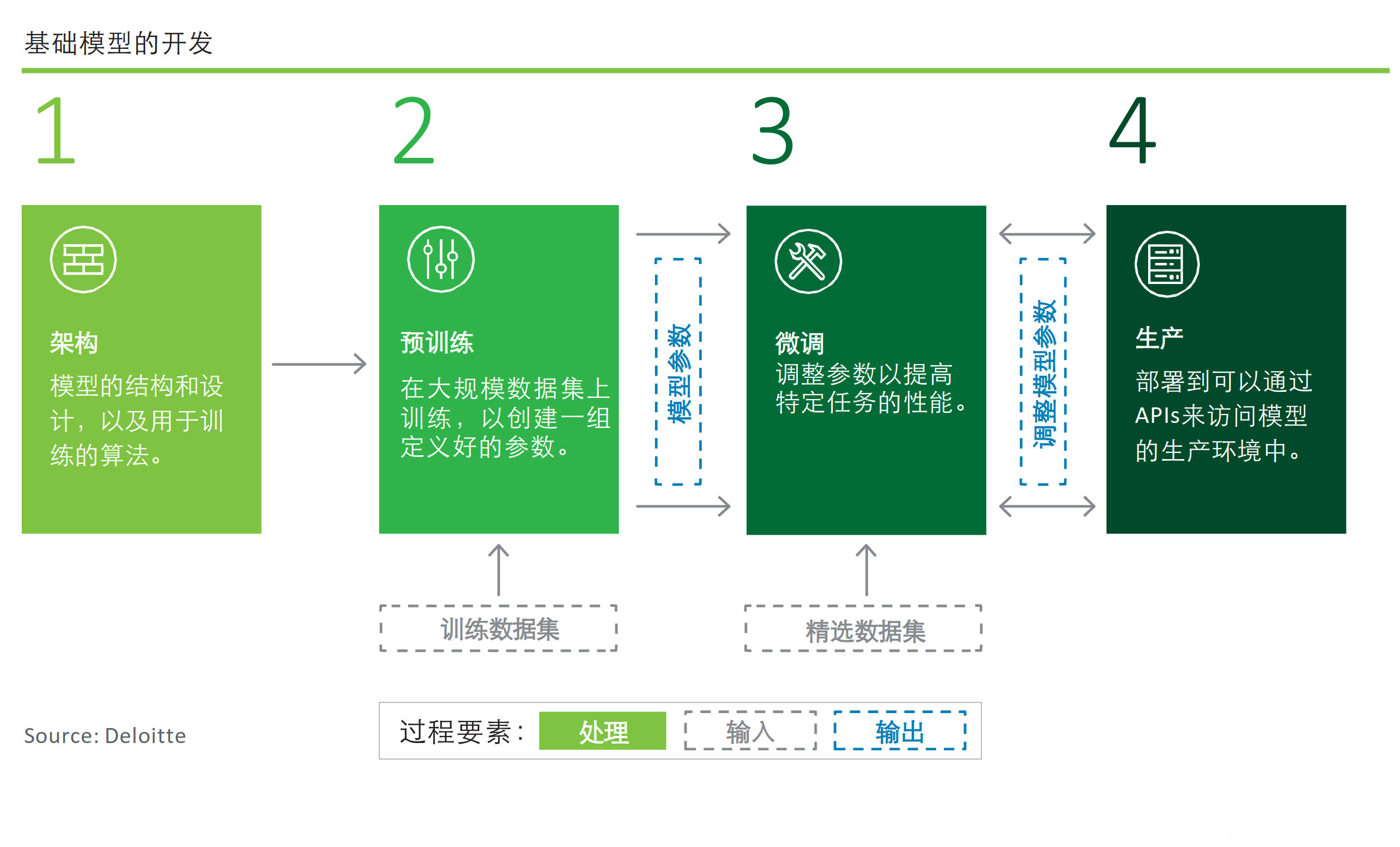 这些模型通常可以通过开放或封闭的API提供给开发人员使用,开发人员可以通过额外的训练数据对模型进行微调,以提高其对特定用例的上下文理解、相关性推理和性能,同时优化交付成本。