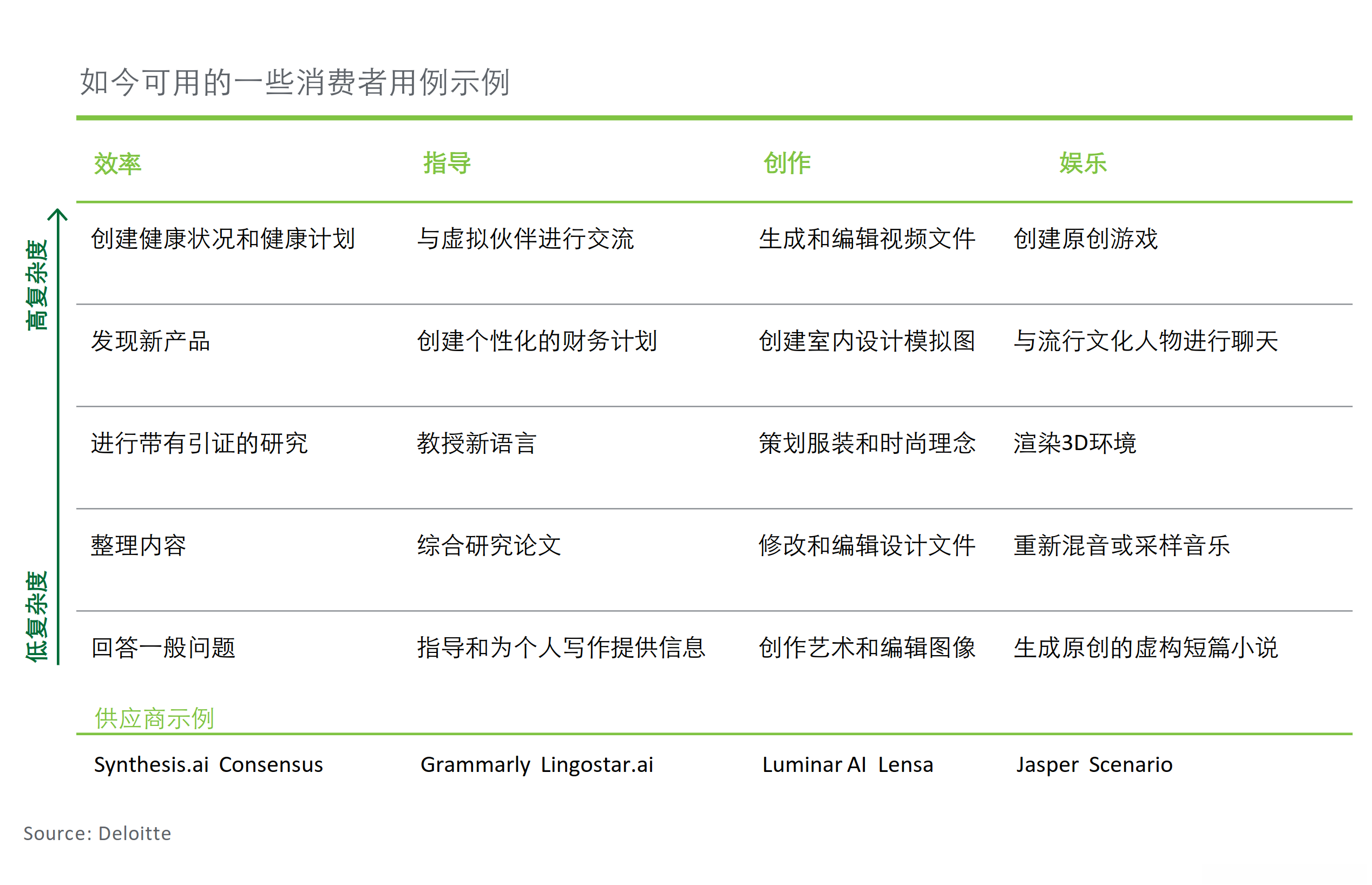 - 创新能力:生成式人工智能可以帮助企业进行更多的创新。通过自动生成创意和建议,AI可以加快产品开发过程,缩短上市时间,为企业带来竞争优势。
