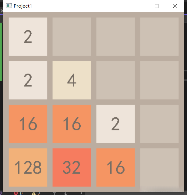 首先做出游戏页面,然后画出4*4的格子,利用map二维数组,依据数字{0,2,4,8,16,32,64,128,256,512,1024,2048}找到对应颜色在固定位置画出方框。