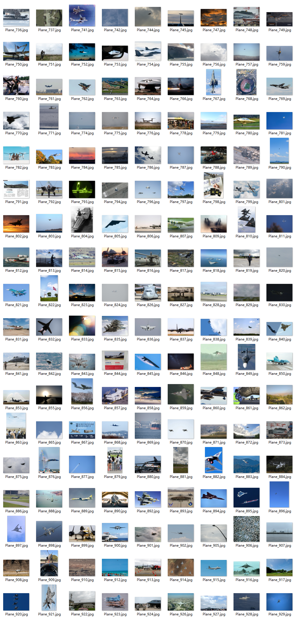 通过收集多样化的战斗机目标相关图片,并利用Labelimg标注工具完成精确标注工作。具体分类为43项:包括'F-16战斗机'、'米格-31'、'F-35闪电II'等不同型号的战斗机以及国际主流机型如US2日本海上搜救机、C-5巨型运输机等空中与地面救援装备。