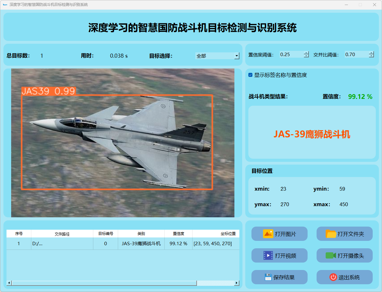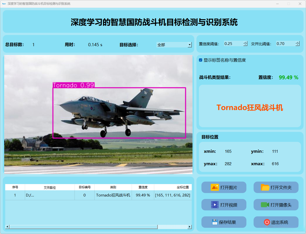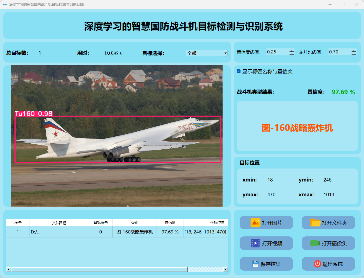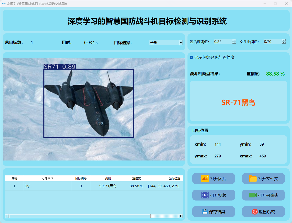(1)该系统能够实现对目标图片中战斗机的实时识别;