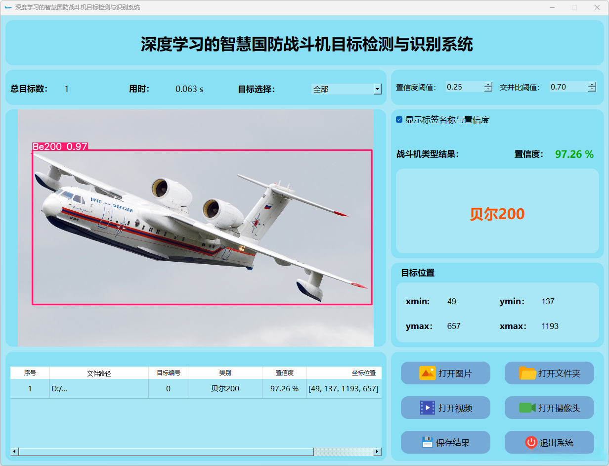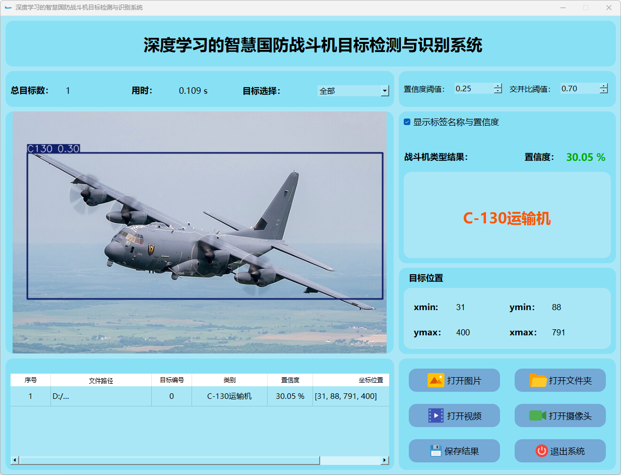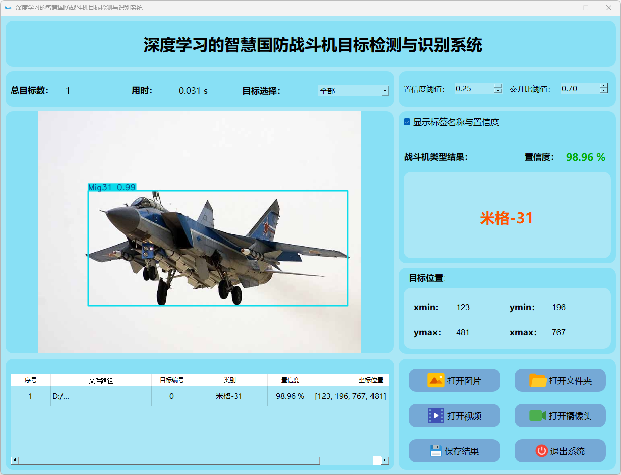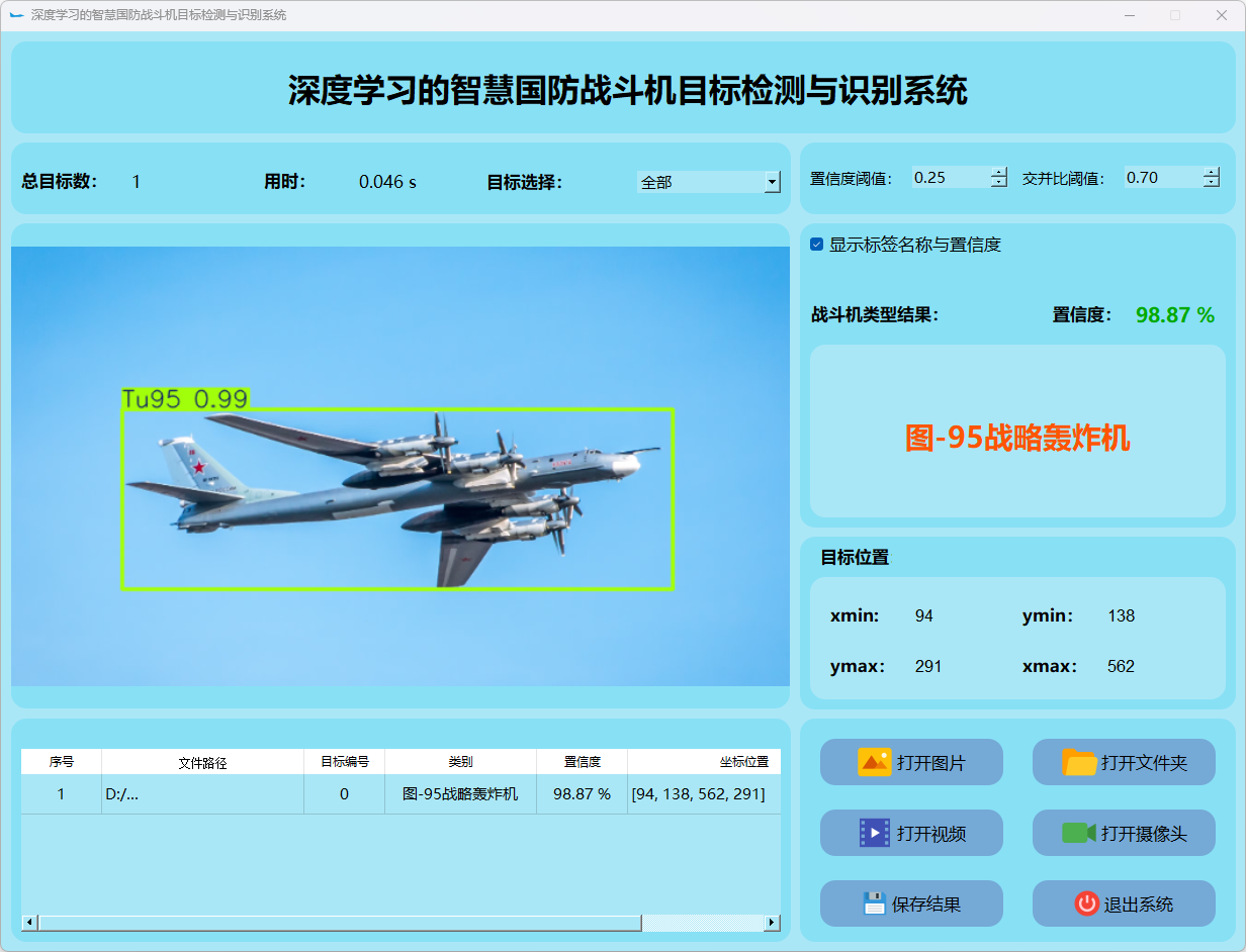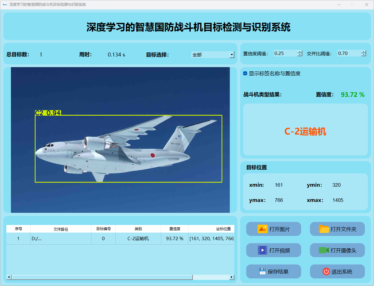(1)该系统能够实现对目标图片中战斗机的实时识别;