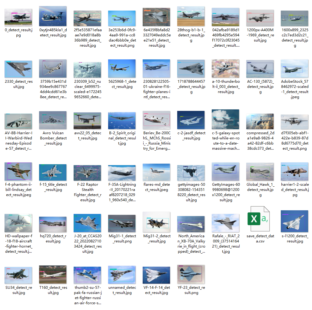 检测报告:该系统识别并展示了图片中战斗机的目标情况。该过程涉及总数量、完成时间及各细节参数等关键信息的呈现与计算。