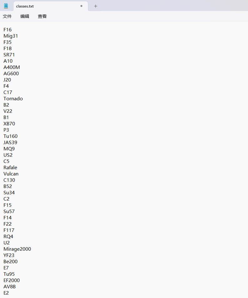 存储标签类别的文件其文件名设为classes.txt(固定不变),用以存储生成的标签类别。