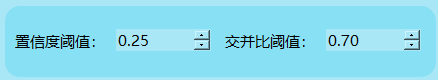 (2)交并比阈值:当前设置为0.70,表示系统只会认为交并比(IoU)超过70%的检测框为有效结果。交并比是检测框与真实框重叠区域的比值,用于衡量两个框的相似程度,值越高表明重叠程度越高。