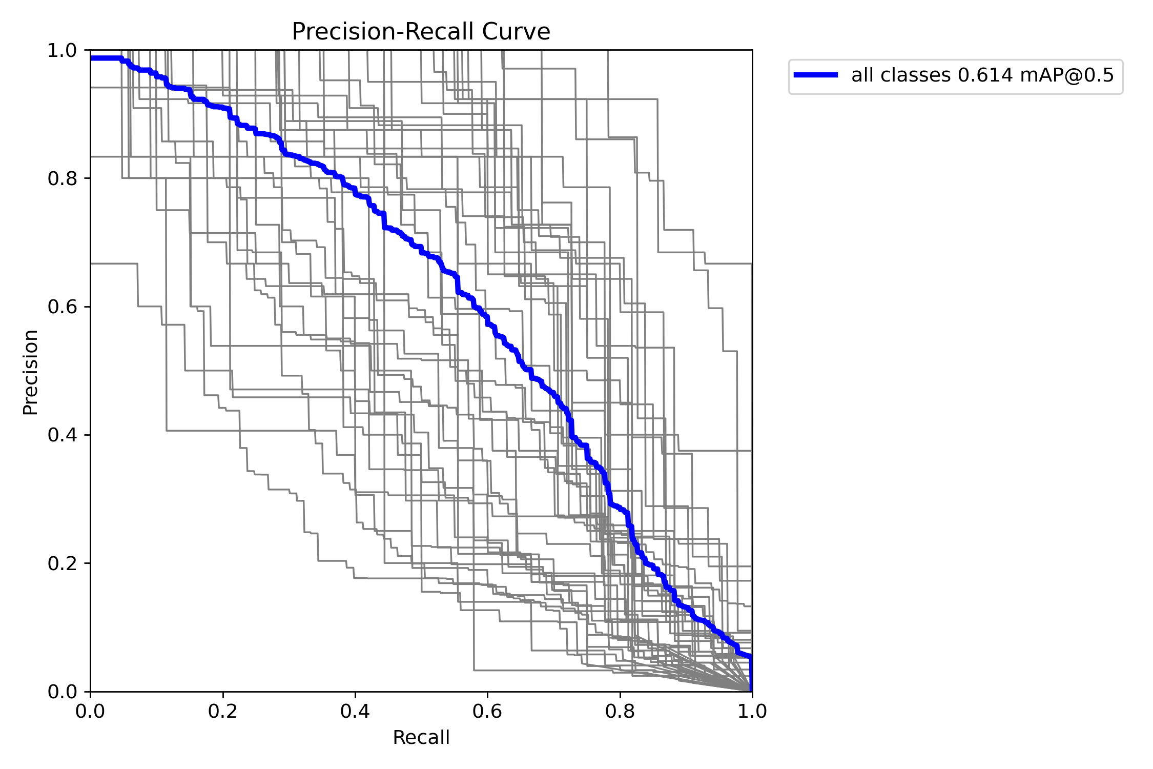 (1)mAP50值为0.614,在IoU≥50%的情况下表明该模型达到了显著的平均检测精度水平。