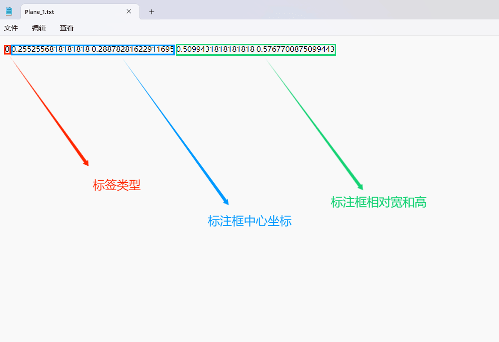 标记信息文件名与图片名称一致,并包含N行且每行5列的数据。每个条目代表一个待注目标,一般包含五个参数:其中x类标识示标定对象所属类别;x_center及y_center分别表示标定框在水平和垂直方向上的中心比例;而xwidth及height则分别表示标定框在水平和垂直方向上的实际宽度与高度比例。