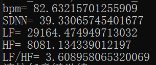 print('LF/HF=',measures['lf/hf']) #输出LF/HF