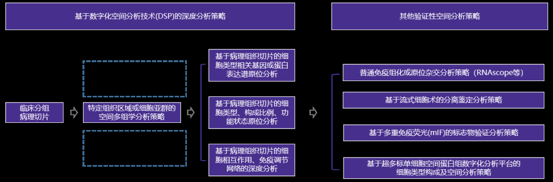 免疫荧光技术在微生物成像中发挥着重要作用,其灵敏度可以实现原位捕获低检测阈值的微生物分布与表达。而作为目前主流的空间组学分析技术,Digital Spatial Profiler (DSP)数字空间多组学分析技术可实现肿瘤微环境中特定细胞多达上百种蛋白和上万种RNA定量,实现空间转录组和空间蛋白组的联合分析;同时,DSP数字空间多组学技术可以将传统的免疫荧光技术与数字可视化编码技术相结合,从而实现肿瘤微环境中微生物群和宿主细胞共定位,并对宿主细胞或菌群进行分子表达特征研究。在此,我们总结了DSP数字空间多组学分析技术在肿瘤微生物空间分析中的研究策略,为广大科研工作者提供参考依据。