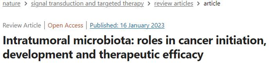 [1].Yang L, Li A, Wang Y, et al. Intratumoral microbiota: roles in cancer initiation, development and therapeutic efficacy[J]. Signal Transduction and Targeted Therapy, 2023, 8(1): 35.