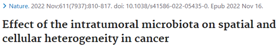 [3]Niño J L G, Wu H, LaCourse K D, et al. Effect of the intratumoral microbiota on spatial and cellular heterogeneity in cancer[J]. Nature, 2022: 1-8.