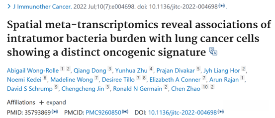 [5].Wong-Rolle A, Dong Q, Zhu Y, et al. Spatial meta-transcriptomics reveal associations of intratumor bacteria burden with lung cancer cells showing a distinct oncogenic signature[J]. Journal for Immunotherapy of Cancer, 2022, 10(7).