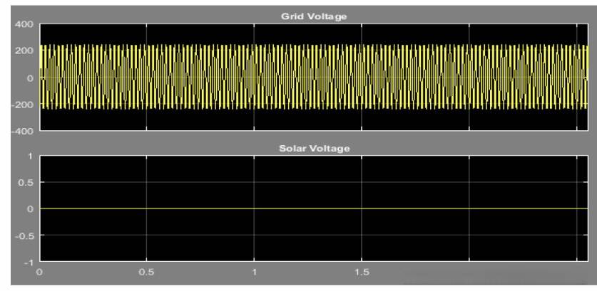 图3 太阳能辐照度=0时电网和太阳能的波形