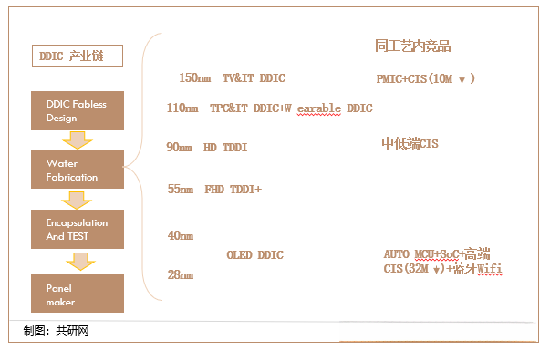 ➢AMOLED驱动IC的制程段较为先进为28nm~40nm;