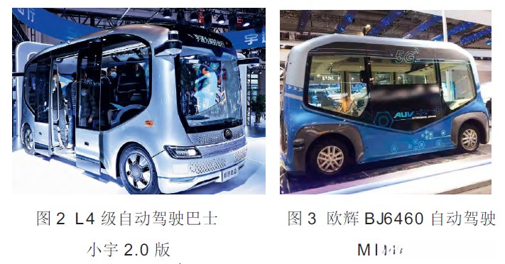 宇通公布全新造型的L4 级自动驾驶巴士小宇2.0版,如图2 所示,可实现超级巡航、动态避障、自主超车、精准停靠、车路协同、自动泊车、自动充电、远程驾驶等功能,该自动驾驶巴士可以无安全员运营,为行业首款同类产品。不仅如此,小宇2.0 版利用出行大数据,融合自动驾驶、物联网、云计算、5G 等技术,此外还结合出行场景以及客户的需求,对于园区、景区、公交、机场等多种应用场景需求均可满足,为激活“最后一公里”提供更优选择。全新一代的小宇2.0 版在造型、人机交互模式、自动泊车、三点调头等方面均实现了全新升级。