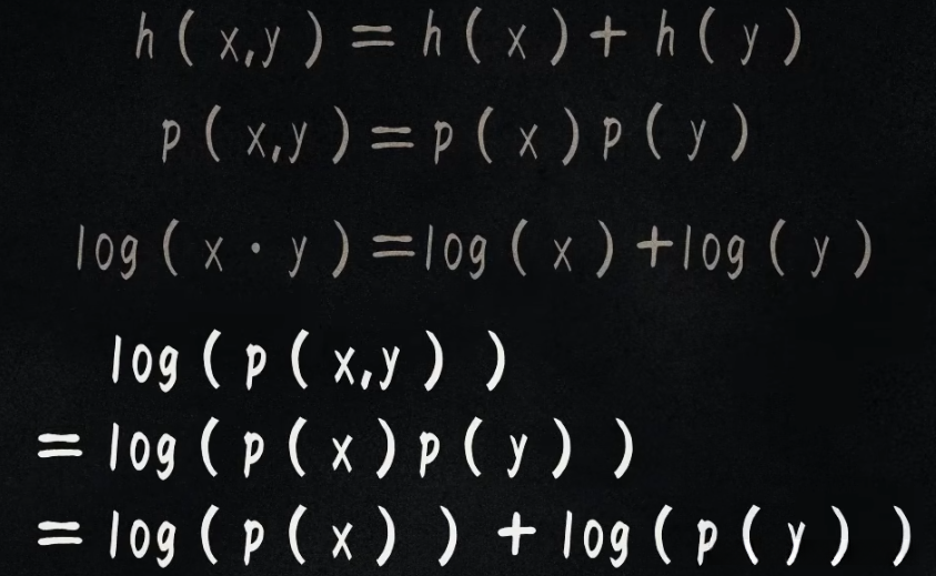 二者同时发生的信息等于其各自发生信息的和,符合对数运算规则。
