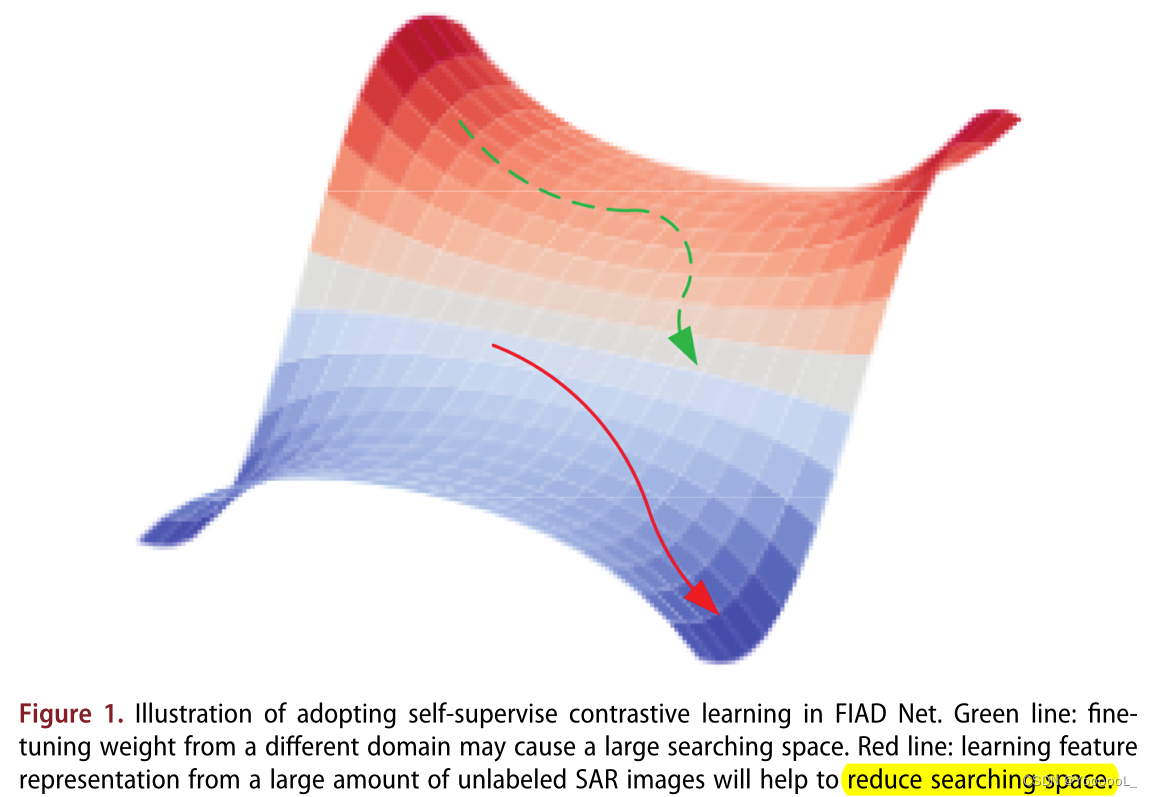 近年来,卷积神经网络(Convolutional Neural Networks, CNN)在计算机视觉领域取得了长足的发展,在各种计算机视觉任务中,CNN的性能已经超过了传统的方法。作为地理信息与计算机视觉的交叉研究领域,基于CNN 的遥感方法也受到了广泛关注(Dong et al. 2020;Liu等。2019;Zhang等。2019;Chen等。2020a;Gao等人,2019;Zhao等,2020;Cui等。2019,2021)。由于遥感图像包含复杂的语义信息,扩大了类内的距离,压缩了类之间的差异(Cheng等,2020),这需要大量的标记训练数据进行监督学习。然而,高人工成本数据中的显式标签可能无法提供足够的特征信息(Chen et al. 2020b)。在这种情况下,如图1所示,更有效的学习过程可以帮助CNNs收敛到更好的解。自监督对比学习能够提取 潜在的特征信息,而不是显式标签(Chen等2020 b;Hjelm等人,2019;Oord, Li和Vinyals 2018;他等人;Grill et al. 2020),很少有研究在SSD上采用对比学习。在这种情况下,有必要讨论在SSD中采用自监督的对比学习。因此,本文提出了一种名为 ModiBYOL的骨干网络预训练方法,该方法 基于SSD任务中的自我对比 self-contrastive学习 。