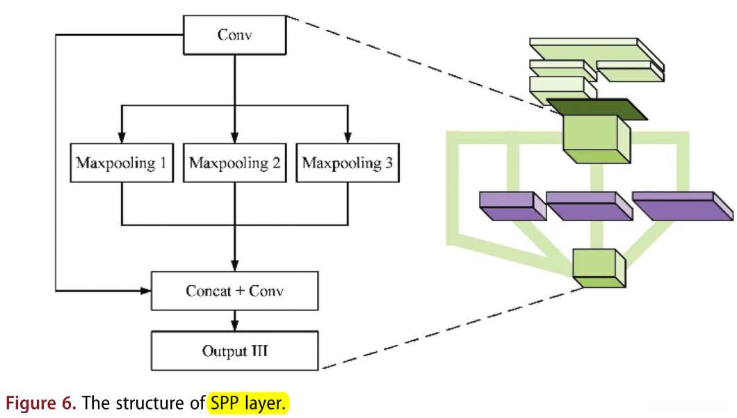 本文使用 两种 neck中的技术 来提高 网络提取 多尺度目标的 特征信息的能力 :空间金字塔池(SPP)(何等,2015)和 路径聚合网络(PAN)(刘等,2018)。